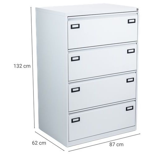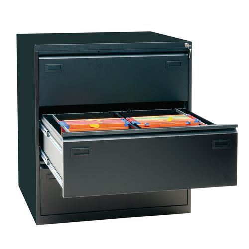 Vippebeskyttelse, der forhindrer, at mere end én skuffe åbnes ved et uheld. Håndtag, der løber langs hele skuffekanten, giver et godt greb. Glidende skillevæg som kan flyttes for at give plads til mapper af folioformat. Garanti : 10 år