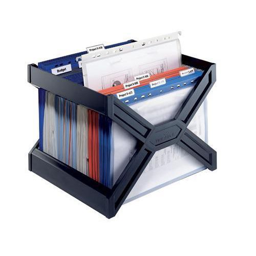 - Selvstændigt stativ til hængemapper, egnet til skuffe, reol eller skrivebord.