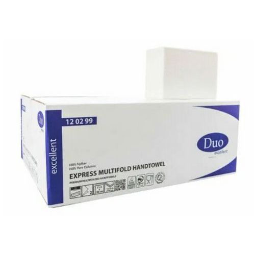 | Varenavn | Håndklæde Duo Express, Farve: Hvid, Format, bredde: 215 mm, Format, længde: 360 mm, Antal ark/pakke: 150 |