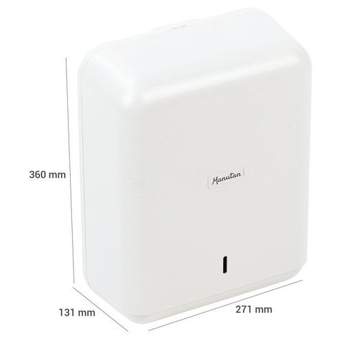 | Varenavn | Håndklædedispenser, Farve: Hvid, Højde: 360 mm, Bredde: 271 mm, Dybde: 131 mm |