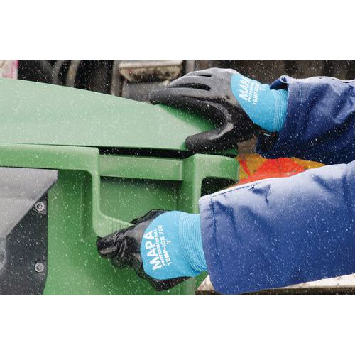 Belægning, der er fem gange stærkere end den gældende standard på markedet. Et godt greb reducerer muskeltrætheden. Vandtæt handske, der holder dig tør selv i våde miljøer. Holdbar: garanteret kapacitet også efter 5 vaske.