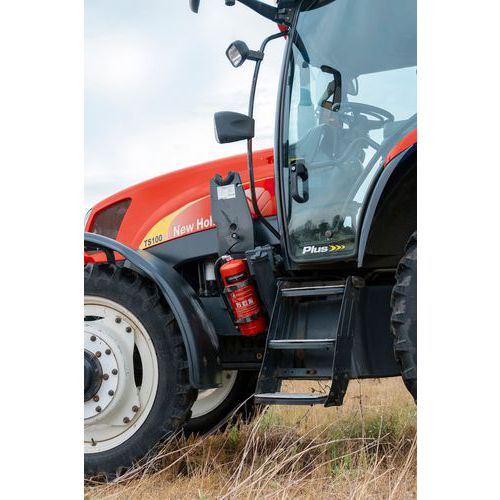 - En rød pulverslukker, der bruges til at slukke brande i faste materialer, væsker og gasser (klasse A, B og C).