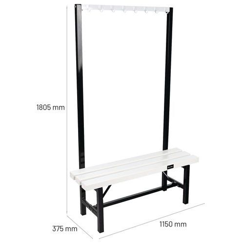 | Varenavn | Hvid PVC-bænk med kroge - Skal samles - Manutan Expert |