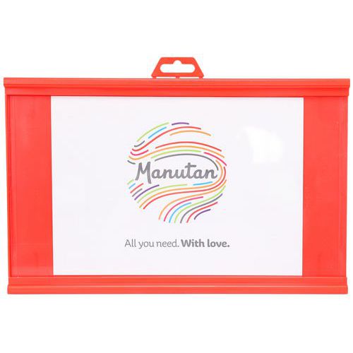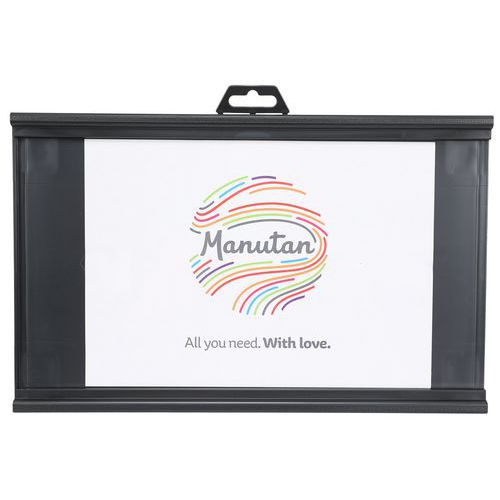 Indsæt papiret med din meddelelse i holderen. 2 retningspile: Angiv retningen ved at flytte meddelelsen til siden. Kan hænges op, skrues fast eller klistres på en plan overflade. Informationstavle, der kan fastgøres på alle runde søjler (undtagen stolper) med reb og bånd Fremstillet i EU Garanti : 3 år