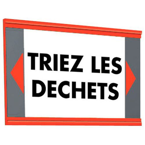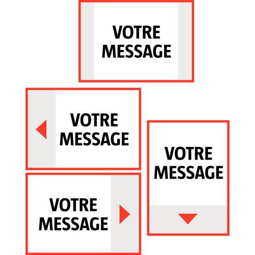 Indsæt papiret med din meddelelse i holderen. 2 retningspile: Angiv retningen ved at flytte meddelelsen til siden. Kan hænges op, skrues fast eller klistres på en plan overflade. Informationstavle, der kan fastgøres på alle runde søjler (undtagen stolper) med reb og bånd