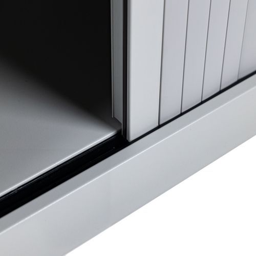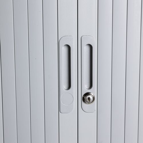 Et kompakt og meget brugervenligt skab. Hylderne kan flyttes for at give plads til hængemapper. Ridsefast epoxyfinish. Plastjalousierne låses med en cylinderlås. Skabet leveres med 2 nøgler til cylinderlåsen.