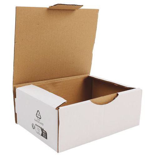 Speedbox er en billig transportkasse med mange anvendelsesområder. Fremstillet i hvidt enkeltbølgepap af 100 % genvundet materiale. Takket være kassens flapper er den hurtig og nem at montere. Leveres umonteret i flade pakker a 50 stk. 50 stk./pk. 100 % biologisk nedbrydelige.