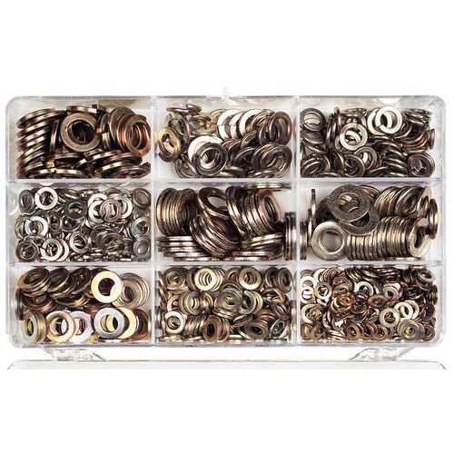 Kasse med flade spændeskiver og elastiske spændeskiver uden læbe - Pakke med 630 stk.