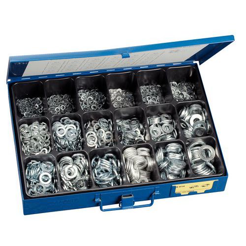 Kasse med flade spændskiver og elastiske spændeskiver uden læbe - 1700 stk.