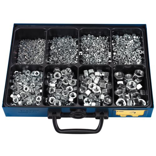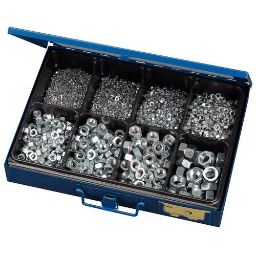 Kasse med sekskantmøtrikker i stål - 2200 stk.