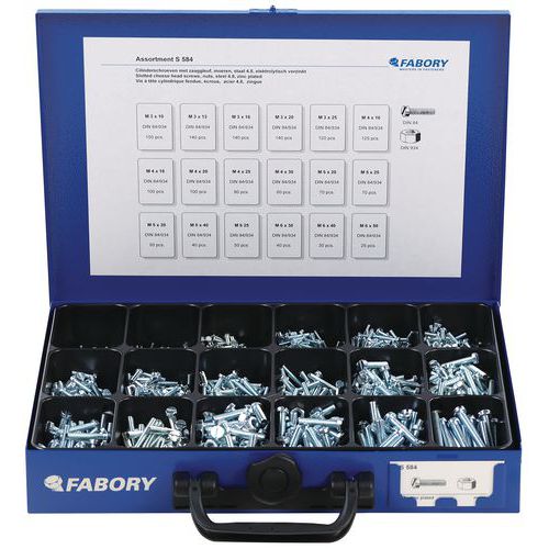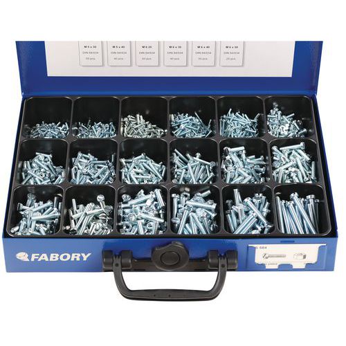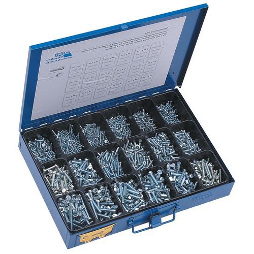 | Varenavn | Kasse med skruer med cylinderhoved og kærv og sekskantmøtrikker, Materiale: Stål, Antal dele: 3060 |