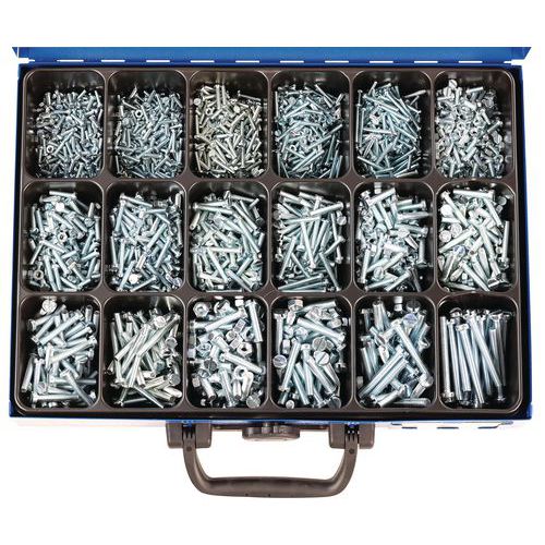 Kasse med skruer med cylinderhoved og kærv og sekskantmøtrikker - 3060 stk.