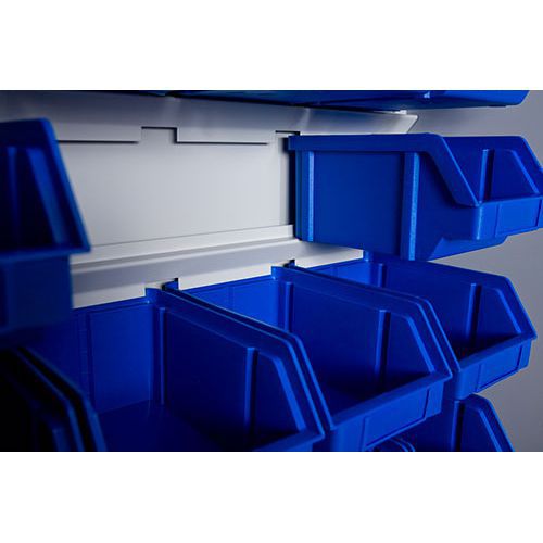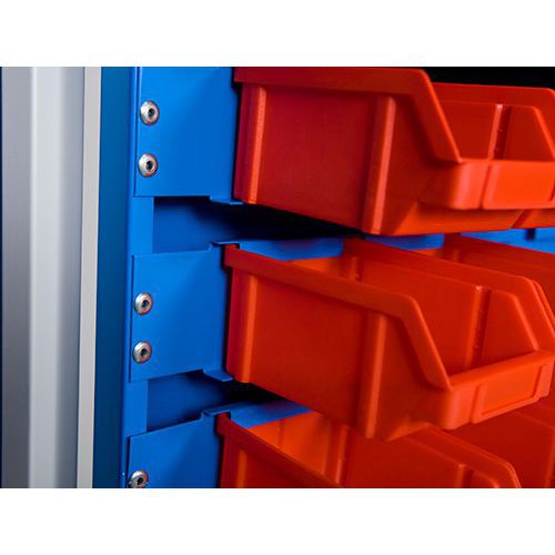 - Kasseskab med 232 kasser og låsbare låger. Skab med 72 stk. 1-liters-kasser ophængt i bagkant og 160 stk. 0,3-liters-kasser ophængt på lågerne, 80 på hver låge. 3 års garanti. Bør ikke udsættes for fugt i længere tid. Hold produktet tørt for at undgå korrosion.