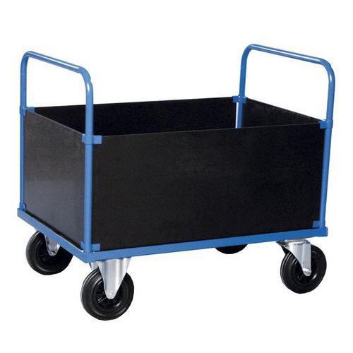 Rulle standard fremstilles i blålakeret stål og MDF direktlaminat, hvilket giver en slidstærk overflade. Vi kan også tilbyde Rulle som lakeret/galvaniseret og helgalvaniseret. Du vælger selv, hvilken slags hjul du ønsker. Massive gummihjul, luftgummi samt elastiske hjul. Behøver du bremsende hjul er det heller ikke noget problem. Kort sagt – her kan du skræddersy din egen vogn, efter dine behov! Vælg hjulsæt! Du vælger selv, hvilken slags hjul du ønsker. Kapacitet: 500-1000 kg. Totalhøjde: 900/960 mm. Lavet i EU Kapacitet (kg) : 500