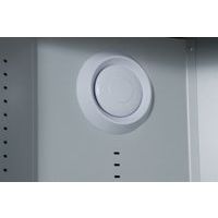 Ventilationen sker via skiveventiler i toppen og bunden af skabets venstre inderhjørne, og ventilerne er forbundet med en indbygget lodret ventilationskanal (Ø 105 mm).