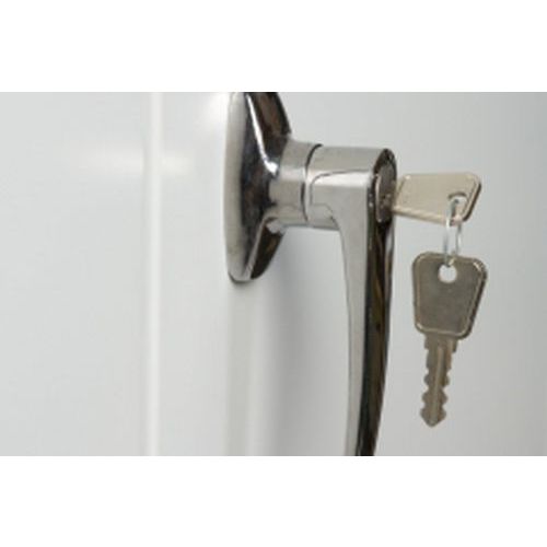 Dør, gavl, bagside, tag og bund er i sandwichkonstruktion med mellemliggende isolering.