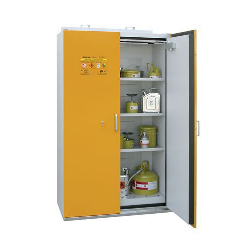 Kemikalieskabet har en automatisk selvlukkende mekanisme i tilfælde af brand, dørene lukker ved en temperaturstigning over 50 ° C.
