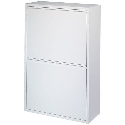 Praktiske skabe til affaldssortering, hvor vippeklapperne åbnes samtidigt – med et enkelt design, der passer ind i alle slags miljøer.