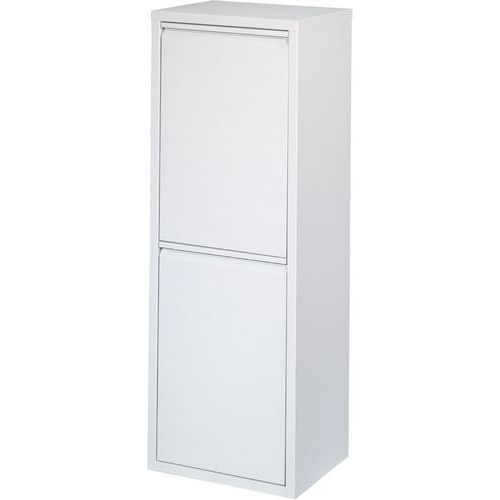 Praktiske skabe til affaldssortering, hvor vippeklapperne åbnes samtidigt – med et enkelt design, der passer ind i alle slags miljøer.