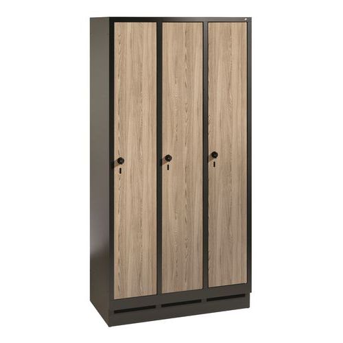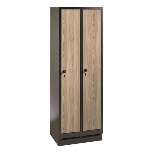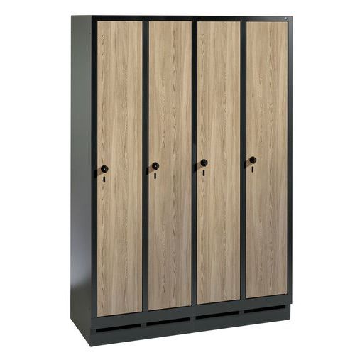- Låger i MDF med kirsebærfiner. Perfekt til kontorer eller sportshaller. Indretning: hylde foroven, garderobeskab og 3 forskydelige knager. Helstøbt garderobeskab i metal på sokkel i stålplade. Drejelig slå til hængelås. Sokkel med ventilationsåbninger.