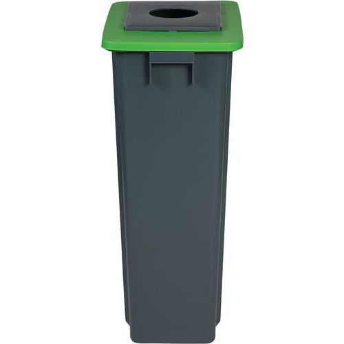 80-liters beholder til sortering af papir, emballage og glas (vælg låg efter den type affald, der skal genvindes). Smidig forflytning og håndtering af beholder takket være håndtag. En kompakt ydeside gør beholderen perfekt til sortering af affald indendørs - byg dit eget genvindingssystem med flere forskellige beholdere. Farvede låg med forskellige slags åbninger angiver på en enkel måde, i hvilken beholder hver type affald skal bortskaffes.