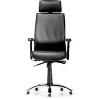 Stolen fås i sort skind eller sort tekstil, begge med justerbar nakkestøtte i læder.