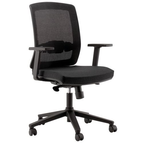 Kontorstol med meget behageligt ryglæn i netstof og armlæn.