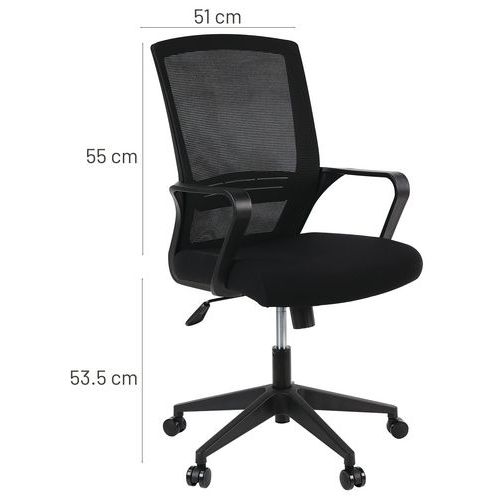 | Varenavn | Kontorstol Elane sort, Armlæn: ja, Type af fod: Hjul, Sæde, materiale: Stof, Nakkestøtte: nej |