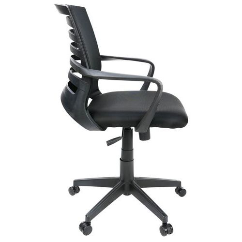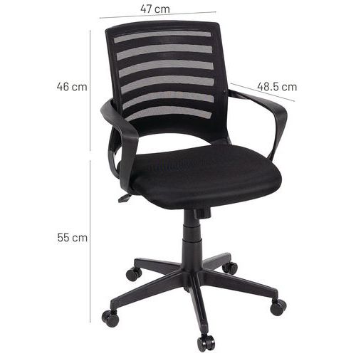 | Varenavn | Kontorstol Ella, Armlæn: ja, Type af fod: Hjul, Sæde, materiale: Stof, Nakkestøtte: nej |