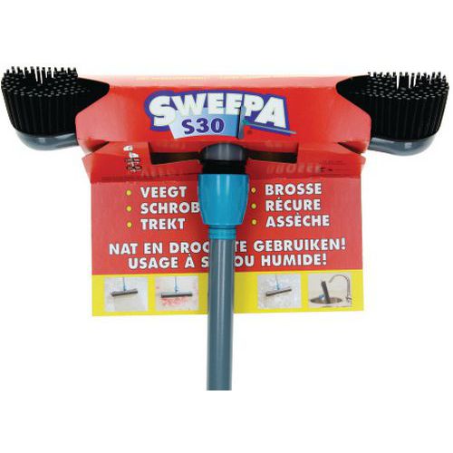 - Forsynet med vandskraber og velegnet til alle overflader. Kan bruges i våd eller tør stand. Er let at skylle af og er der for ekstra hygiejnisk. Fejer væk støv og snavs og også blade.