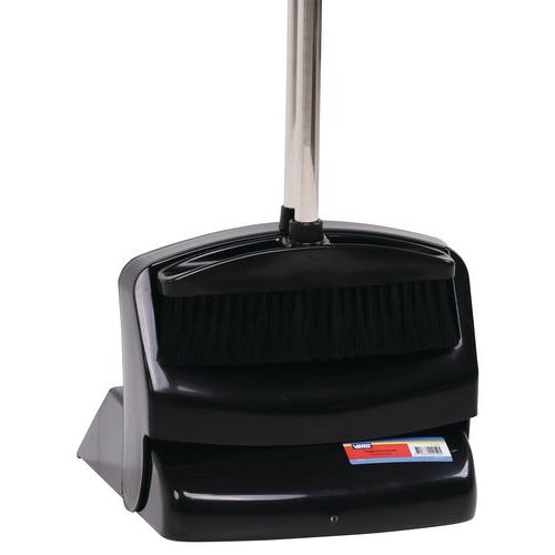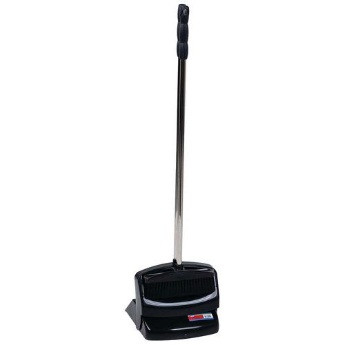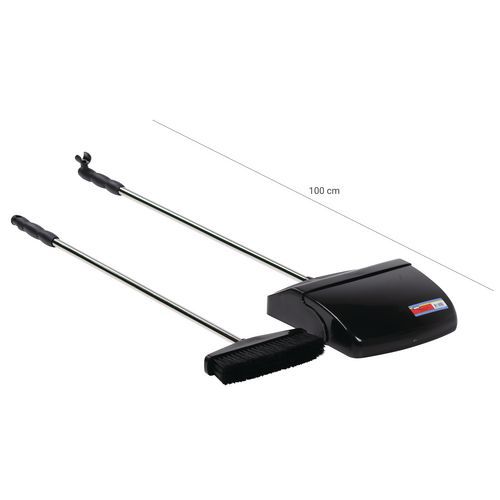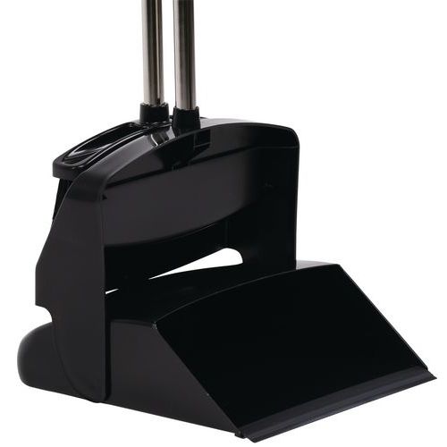 - Kost og fejebakke med skaft. Du behøver ikke at bøje ned. Fejebladet foldes automatisk sammen ved løft.