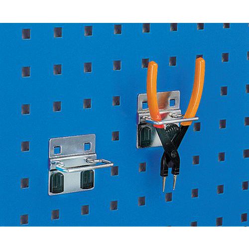 Lukket holder til tænger. Robust model med en tykkelse på 6 mm. Sikkerhedsclips af plast gør det let at fastgøre beslaget.