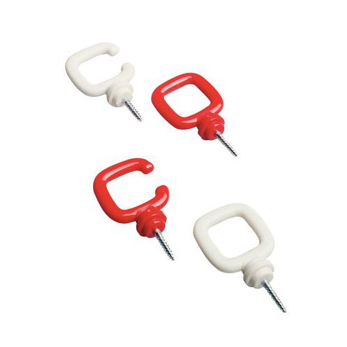 - Åben krog til fastgørelse af en kæde. Vægmontering med skrue. Tilbehør til Plastkæder.