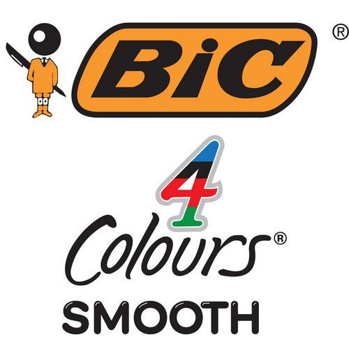 - BIC 4-farver Smooth – trykkuglepen, genopfyldelig, med 40 % mere flydende blæk end originalmodellen.