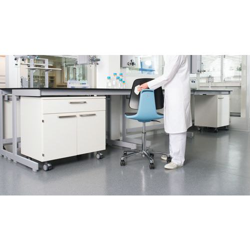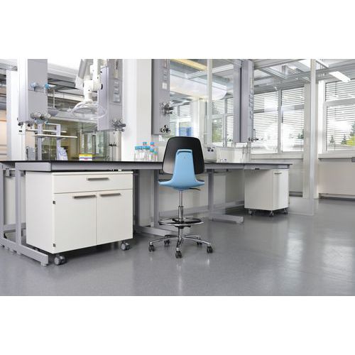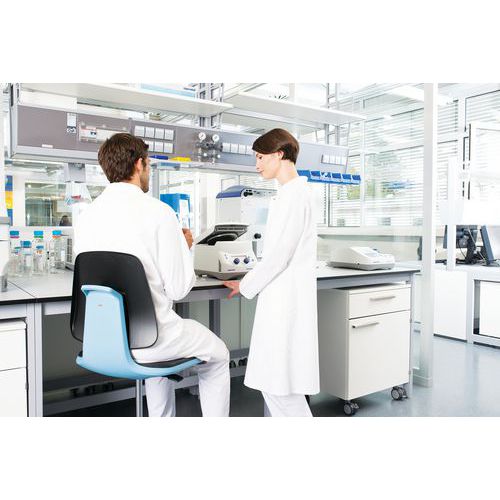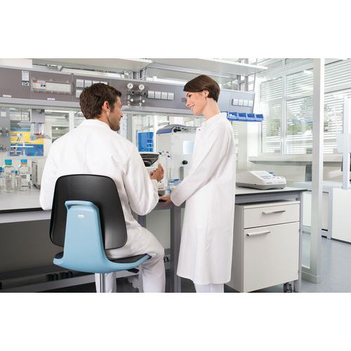 Værkstedsstolen er velegnet til renrum. Innovative ergonomiske funktioner: Tilpasser sig alle kroppens bevægelser. 3D-Flex-funktioner på sædekanten og ryglænet Nem at bruge takket være de integrerede håndtag. Vaskbar og modstandsdygtig over for desinfektionsmidler. Perfekt til laboratoriet