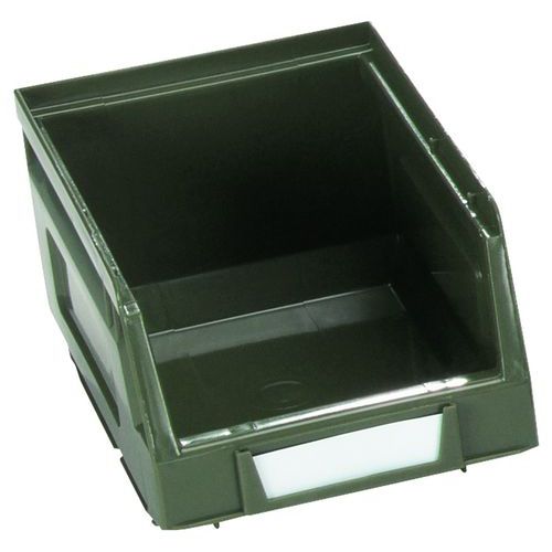Manugreen-modulkasse, som kan stables (fuld og tom) sammen med andre kasser med samme kapacitet. Riflet bund betyder, at den kan bruges på rullebaner. Robust med forstærkede sider. Slagfast og holder formen. Beslag på bagsiden gør det nemt at fastgøre den på paneler.