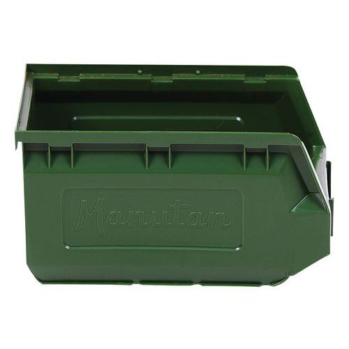 Ideelle til montering på bakkepaneler og til organisering af et hvilket som helst arbejdsområde. Perfekt til opbevaring af små dele og komponenter. Polyethylen af topkvalitet og høj densitet med forstærkede sidevægge, der giver ekstra styrke og stivhed. Særdeles bestandige over for olier, syrer og høje og lave temperaturer. Integreret etiketholder foran på kassen (blanke etiketter findes som ekstraudstyr). Kan bruges fritstående, stablede, på hylder eller monteret på bakkepaneler. Farver: rød, gul, grøn eller blå.