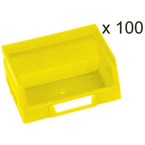 • Ideelle til montering på bakkepaneler og til organisering af et hvilket som helst arbejdsområde. Perfekt til opbevaring af små dele og komponenter. Polyethylen af topkvalitet og høj densitet med forstærkede sidevægge, der giver ekstra styrke og stivhed. Særdeles bestandige over for olier, syrer og høje og lave temperaturer. Integreret etiketholder foran på kassen (blanke etiketter findes som ekstraudstyr). Kan bruges fritstående, stablede, på hylder eller monteret på bakkepaneler. Farver: rød, gul, grøn eller blå.