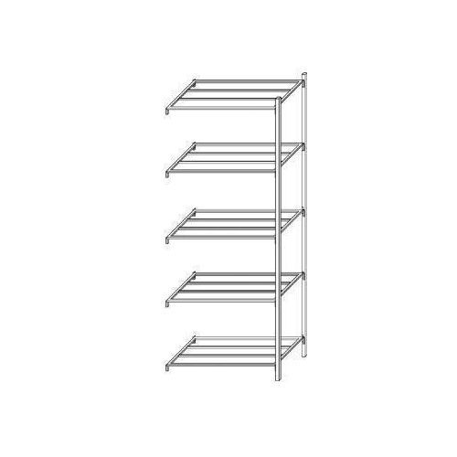 - Reol med hylder af rørprofiler.