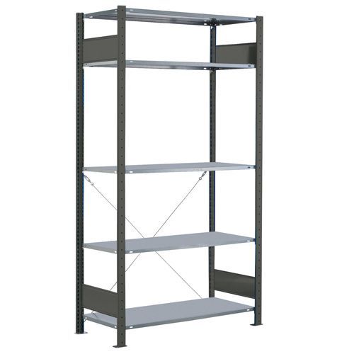 Lagerreol Easy-Fix-Sort: Grundsektion, Maksimal vægt pr. hylde: 150 kg, Højde: 2000 mm, Antal hylder: 5