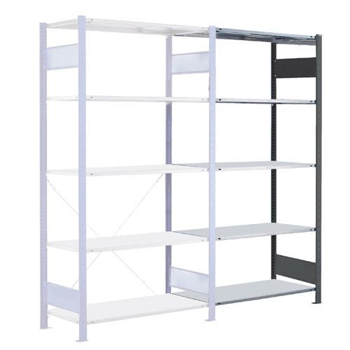 - Påbygningssektion: består af 2 stolper - koblinger - stolpefødder - 1 tværstiversæt - 5, 6 eller 7 hylder.