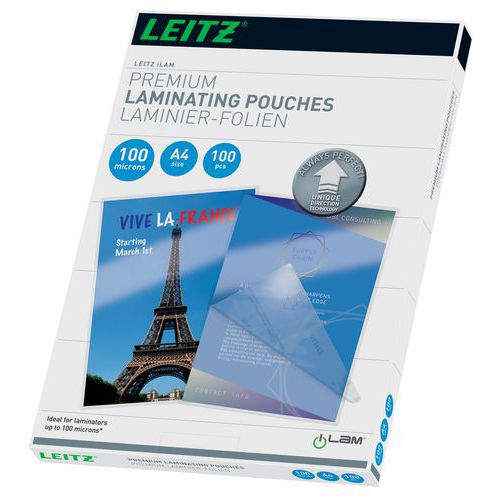 - Leitz A4-laminat med UDT gør laminering nem og sikker.