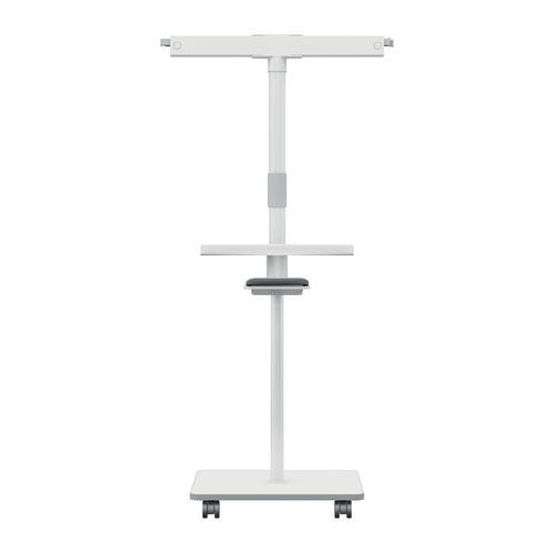 - Stativet har justerbar højde, låsbare hjul og udtrækkelige arme, der giver en større arbejdsflade.