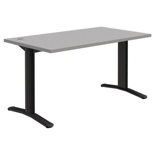 Lige skrivebord, Pure - lysegrå/mørkegrå - faste ben - Quadrifoglio