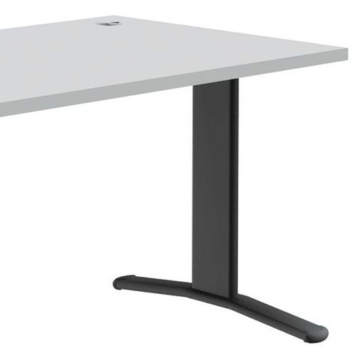 Æstetisk og ergonomisk skrivebord. Velegnet til behov for store ledningsføringer. Bordpladen er antirefleksbehandlet og ridsefast. Lodret strømføring inde i bordbenene og gennem kabelhullerne i bordpladen. Ideel til fjernarbejde og etablering af åbne kontorlandskaber