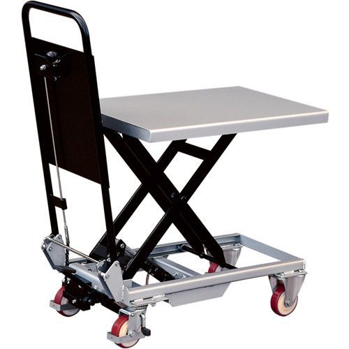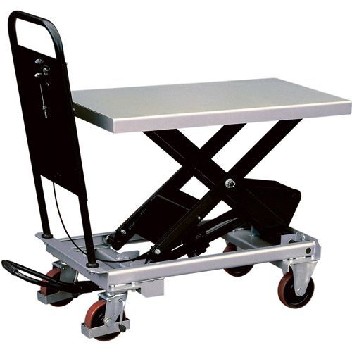 - Løftevogn manuel er et mobilt manuelt løftebord, der kan anvendes som hjælpemiddel ved mange typer arbejde for at skåne kroppen for tunge løft.