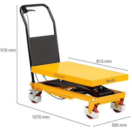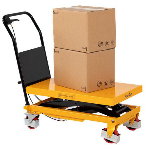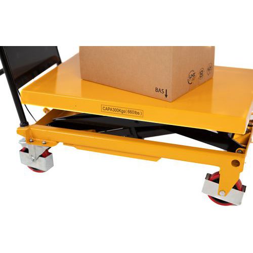 | Varenavn | Løftevogn 300 kg, Kapacitet: 300 kg, Skive, maksimal højde: 895 mm, Antal pedalslag for maksimal højde: 38 |
