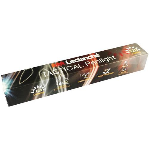 | Varenavn | Lommelygte Tactical Penlight, Lysstrøm: 120 lm, Levetid: 6 time, Spændvidde: 46 m, Batteri indgår: nej |