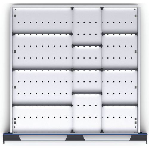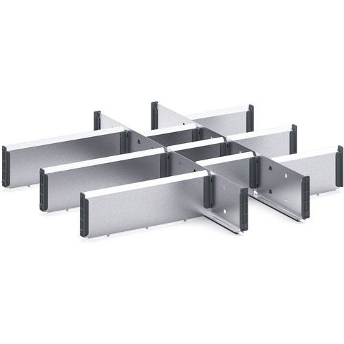 Opdelersæt til skuffeskab Bott SL-66 – Højde 8 cm, Type af sektionsinddeling: 2 skillevægge, 9 faner