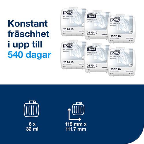 - Tork Airfreshener A3 Konstant neutraliserer dårlig lugt og giver toiletrummet en frisk følelse.